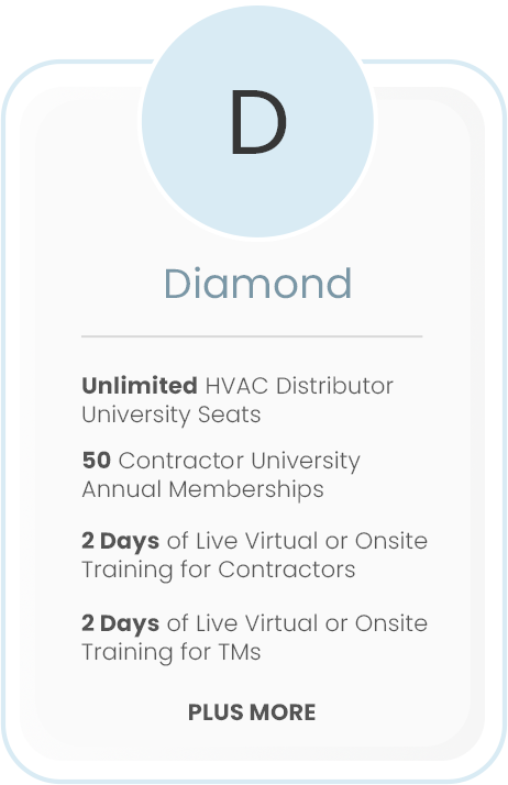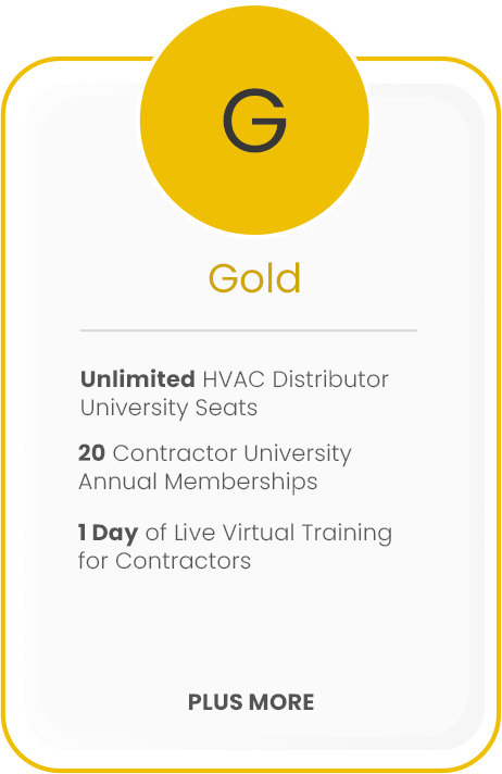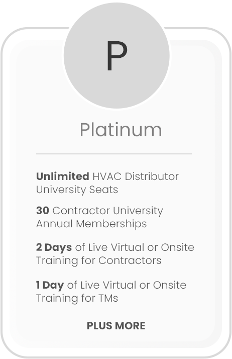 Welcome to HVAC Distributor University, the ultimate turnkey training platform for HVAC Distributors and their sales teams. HVAC Distributor University enables sales team members to develop the critical skills and knowledge base necessary to thrive in their role and become an indispensable resource for the contractors they serve.